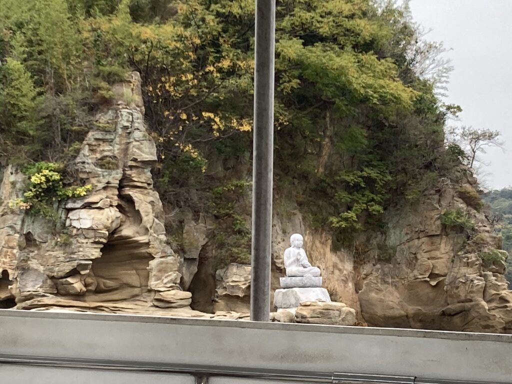 そんなちょっとグロッキーな状態のときに出会ったのが、この崖の上にちょこんと座る白いお地蔵さん。