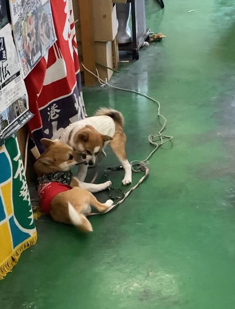 帰り際、港の一角でじゃれ合うワンちゃんたちに「またね」と手を振って、次の目的地へ向かいました。