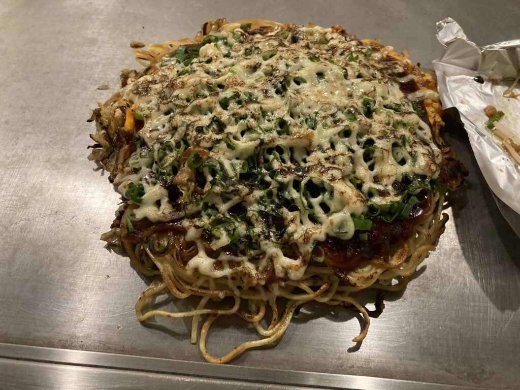 カロリーのことはいったん忘れてかぶりつくと、ソース・ネギ・マヨが口の中で混ざり合って、まさに背徳感満載。でも、移動と資料館見学で少し疲れた体には、このくらいのご褒美がちょうどよく感じました。