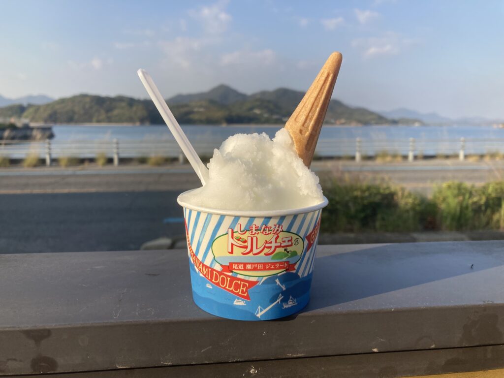 瀬戸田の海を背景に食べる一杯は、まさに今回の2泊3日の旅を締めくくるのにぴったりのご褒美デザートでした。